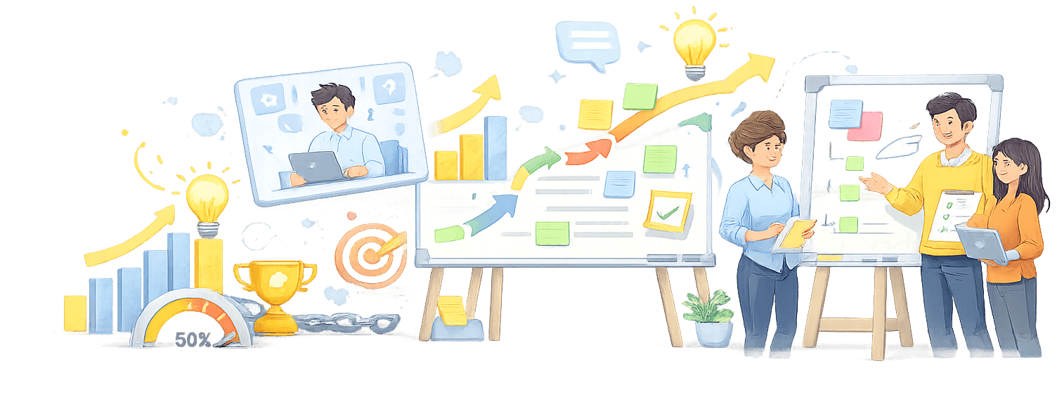 Akademie je místo pro lidi, kteří nechtějí „agile divadlo“, ale reálné zlepšení výsledků: rychlejší dodávky, vyšší předvídatelnost a méně reworku. Najdete tu kurzy, simulace a praktické šablony, které můžete použít hned.